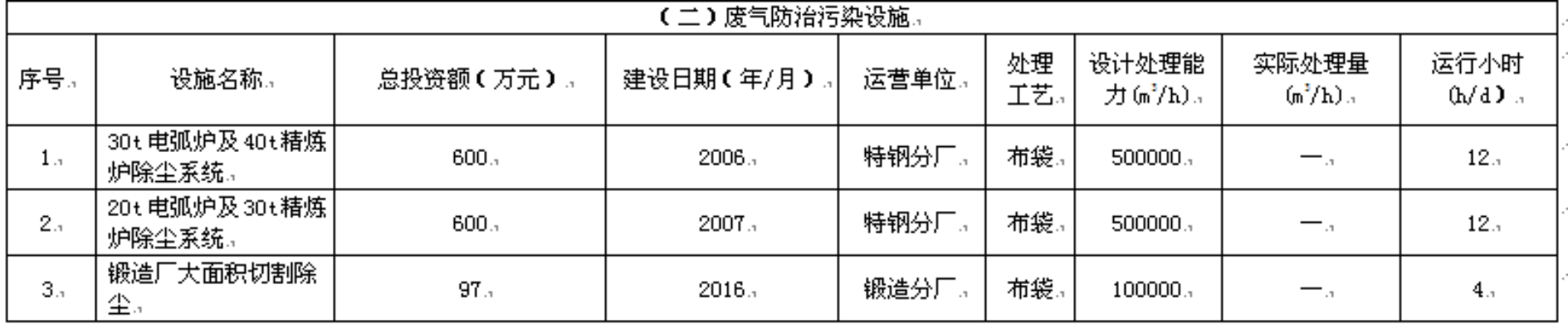 (二)废气污染物信息表